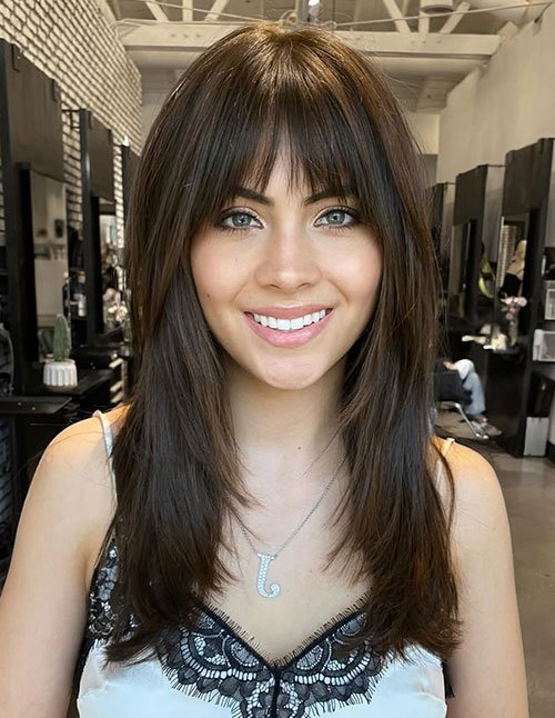 Long Haircut with Full Fringe and Soft Layers