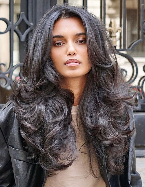 This glam layered haircut focuses on smooth transitions and polished volume. Long layers are designed to flow seamlessly, creating a luxurious blowout effect. It flatters nearly all face shapes and works across most hair textures. Styling effort is medium due to heat styling, but the result is long-lasting.