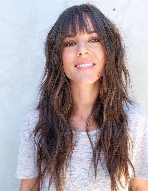 Long Layered Haircut with Swoopy Curtain Bangs