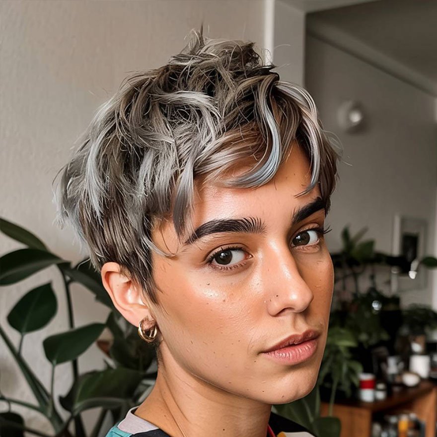 This icy pixie cut is cropped close around the sides and nape, with slightly longer layers on top for styling flexibility. The frosty tone brings brightness and dimension to short hair. It’s bold, edgy, and surprisingly easy to manage.