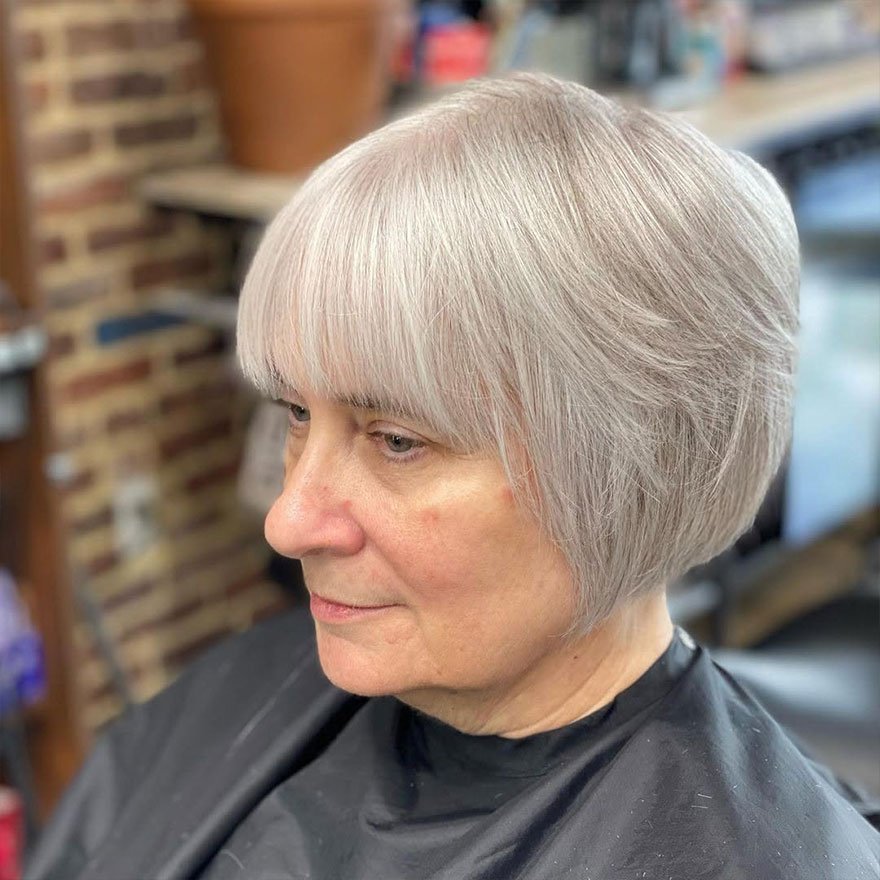 I gave this cut to my mom when she embraced her natural gray, and it completely lit up her face. She said it made her feel elegant yet free, and it cut her styling time down to just minutes each morning.