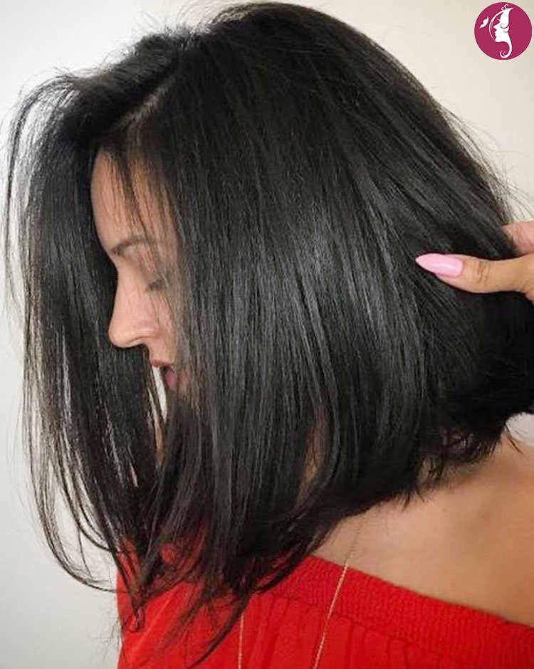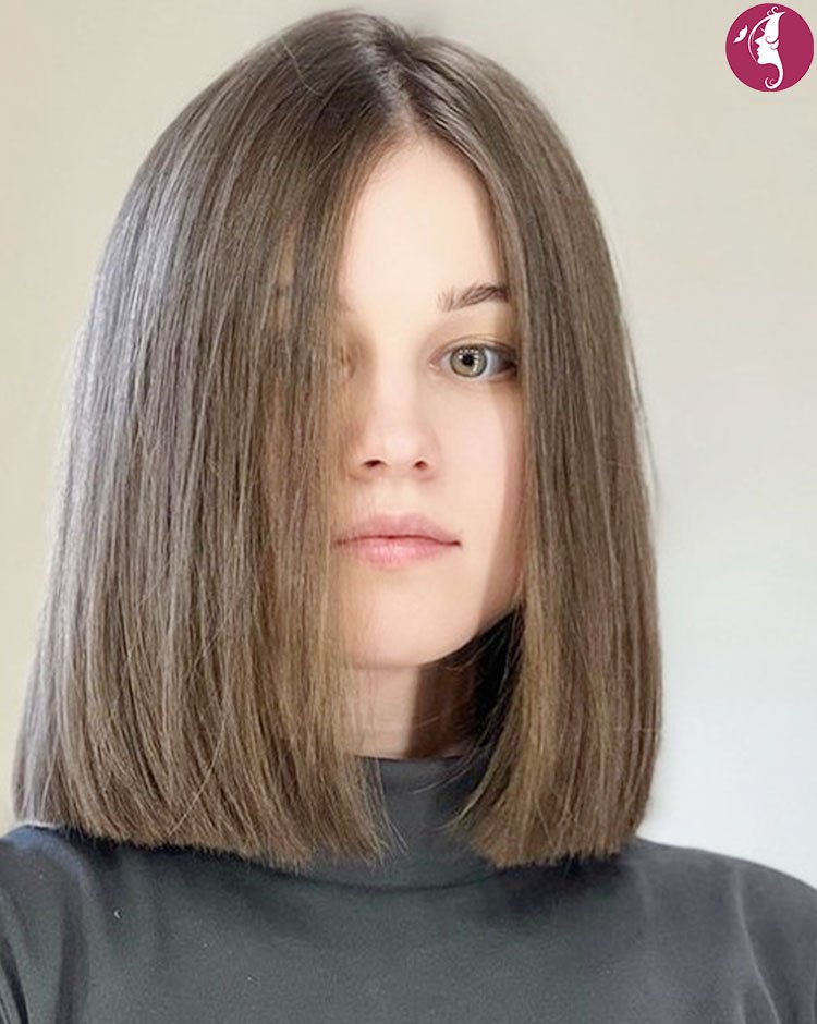 Without layers, the cut emphasizes shine and structure for a clean silhouette. It works exceptionally well on straight hair for a glossy, refined look. A deep side or middle part can subtly transform its overall effect.
