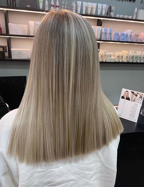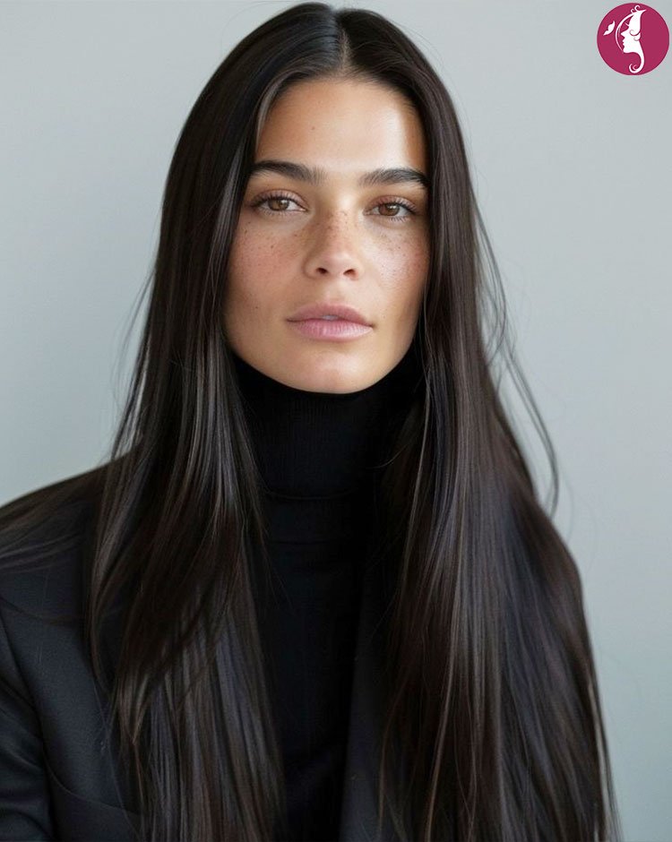 This long straight haircut is elevated with soft face-framing layers that contour the cheekbones and jawline. The length remains mostly uniform, while the front sections are carefully graduated to add structure and lightness. It’s a flattering option for enhancing facial features without losing overall length.