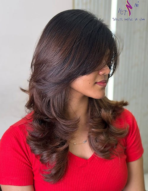 Soft, long layers help straight hair gain natural movement while still keeping that smooth, glossy finish. This style removes weight from the bottom, allowing the hair to fall effortlessly while showcasing its shine. It’s especially flattering for those who want a refreshed look without losing length.
