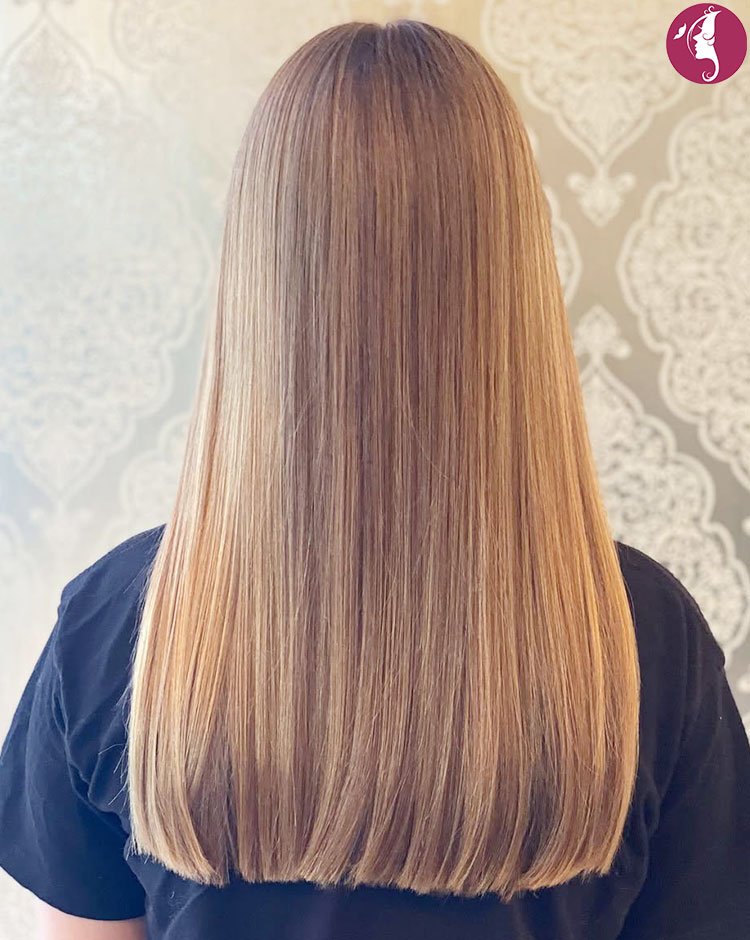 This long straight V-cut features a sharply tapered back that forms a soft V shape at the hemline, creating natural movement without sacrificing length. The subtle layers are delicately blended to maintain density while preventing the ends from looking heavy. It’s an ideal choice for women who love sleek, polished hairstyles with gentle dimension.
