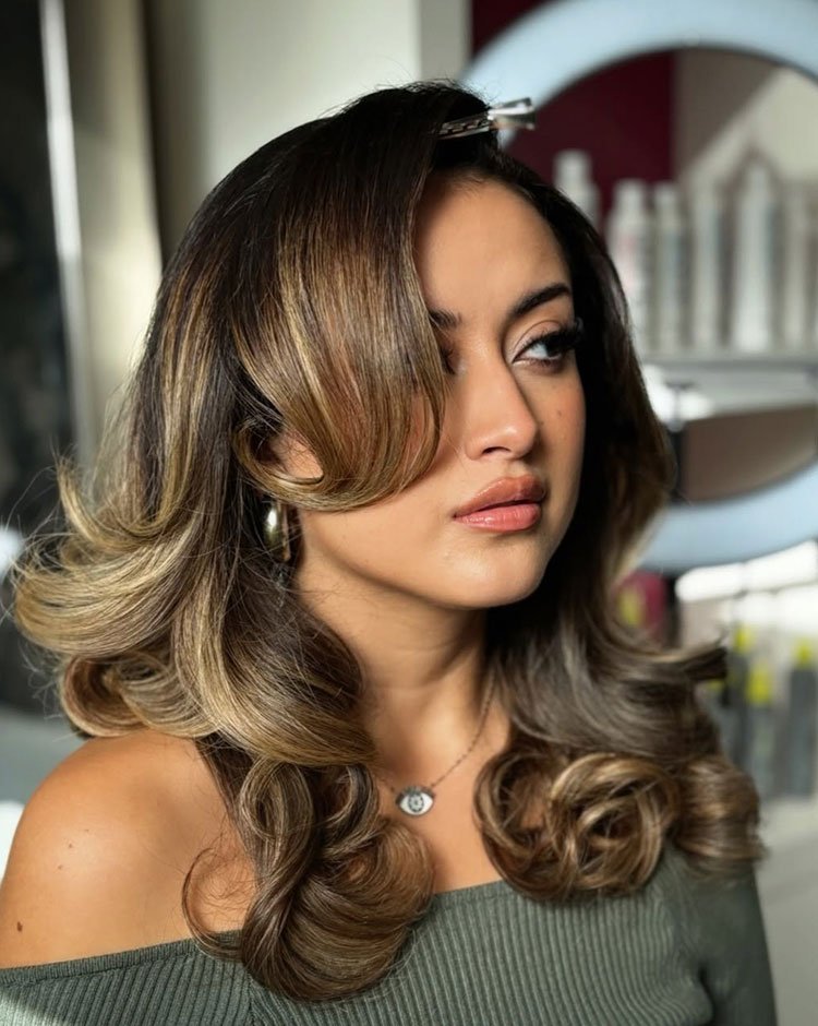 This voluminous blowout delivers instant glamour with its soft bounce, lifted roots, and perfectly sculpted layers. The face-framing pieces add shape and definition, making the style feel fresh, youthful, and red-carpet ready. It’s especially ideal for guests who prefer wearing their hair down but still want it to look elevated.