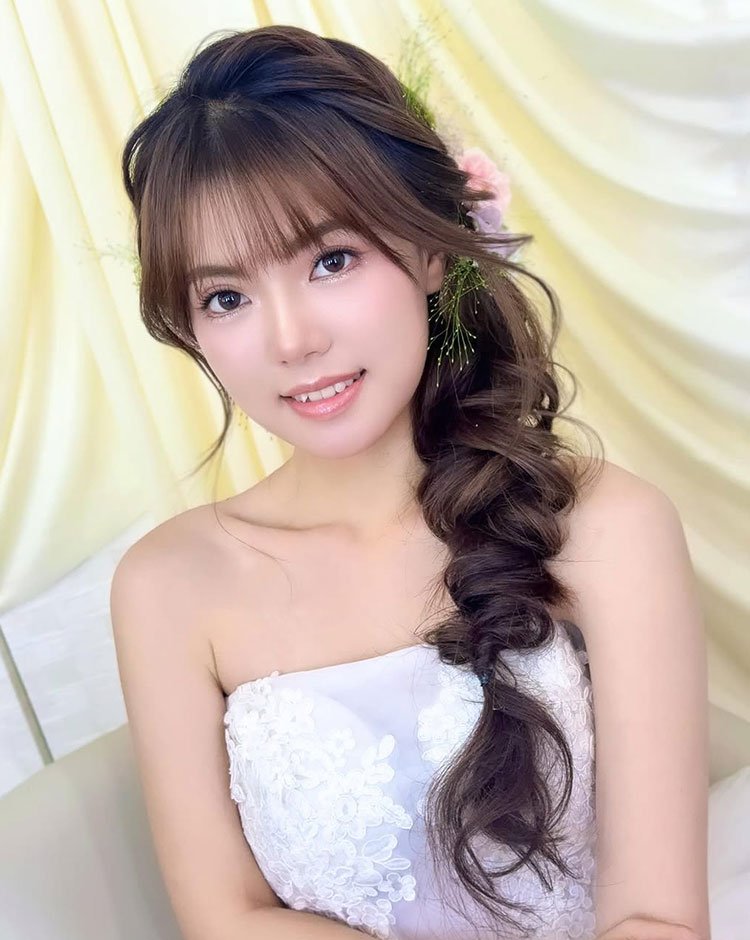 I created a similar side braid for a friend during a destination wedding, and the results were stunning. The braid stayed secure in the humid weather, and the soft bangs framed her face so beautifully that she barely needed extra styling. It looked natural, relaxed, and perfect for the occasion.