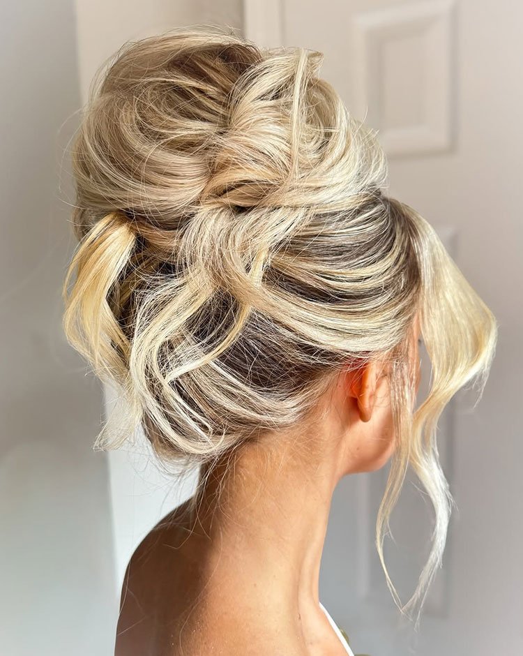 This style is perfect for anyone who wants a soft, feminine look that still feels elegant and polished. The textured bun creates a natural, effortless vibe, while the face-framing waves add movement that photographs beautifully from every angle. It’s a go-to choice for weddings, evening events, and any occasion where you want classic charm without looking overly formal.
