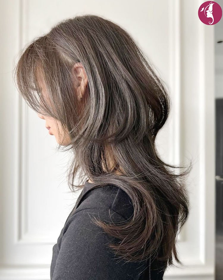 This look embodies the natural, breezy hush aesthetic with its feathered ends and smooth transitions. The cool-toned color enhances depth without overpowering the softness. It’s perfect for those wanting elegance with an effortless vibe.