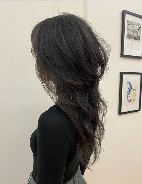 Many clients choose variations of this cut because of how versatile it is. Whether worn straight or slightly tousled, the long shag layers always fall beautifully and give that relaxed, modern charm without needing much styling effort.