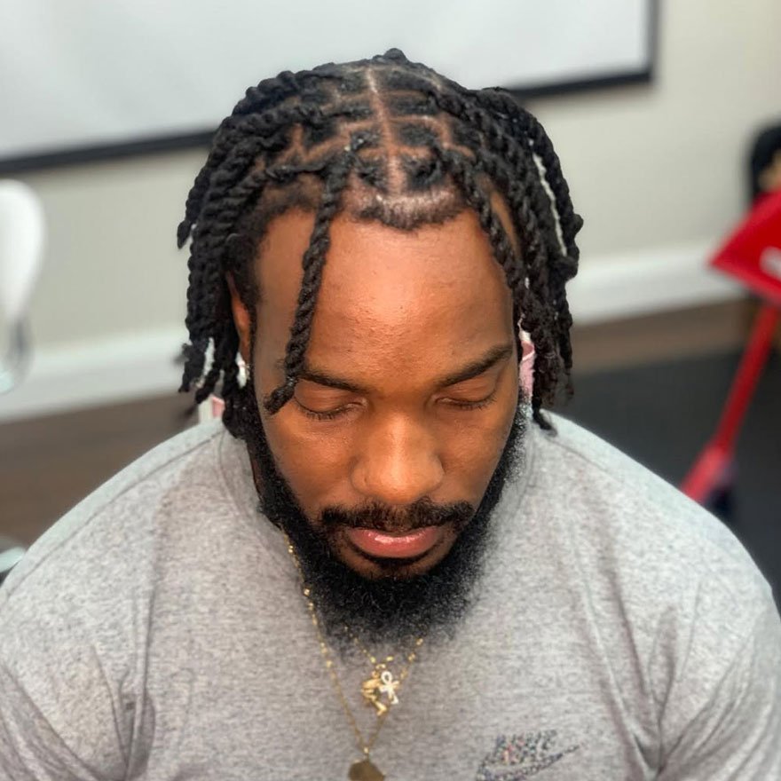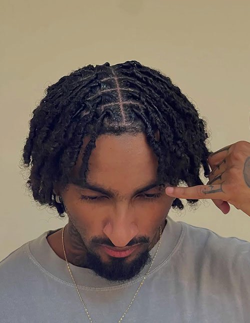 Short two-strand twists are the ultimate low-maintenance hairstyle for men who want definition and texture without losing their natural look. Perfect for both beginners and experienced dread wearers, this style enhances the natural curl pattern while keeping things clean and stylish.