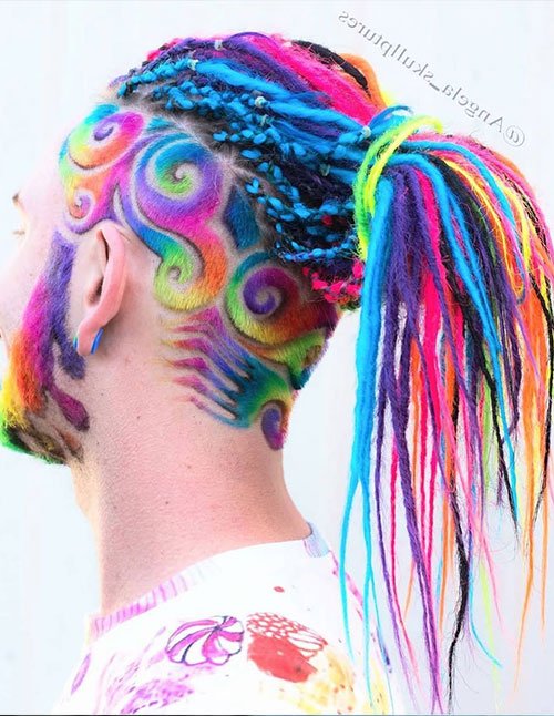 Rainbow Colored Dread Ponytail with Undercut Design