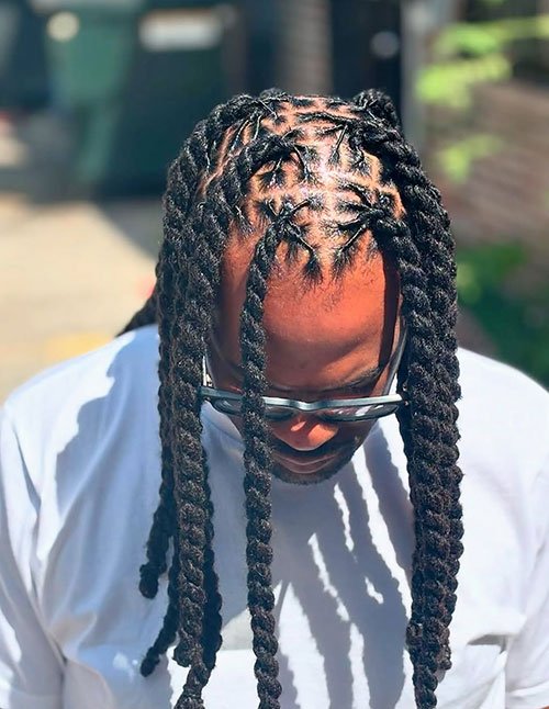 Rope twists are a sophisticated take on two-strand twists, giving each section a tighter, rope-like texture. The defined grid adds polish and keeps the hairstyle balanced, perfect for men who like a sleek, intentional finish.