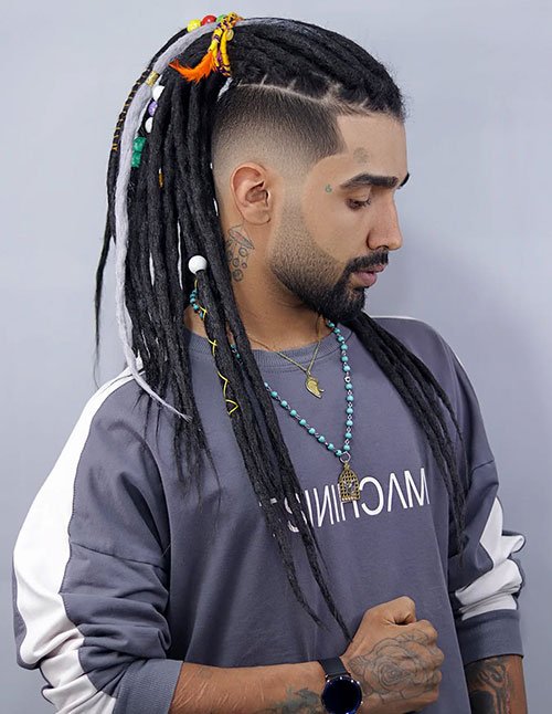 Long Dreadlocks with High Skin Fade & Accessories