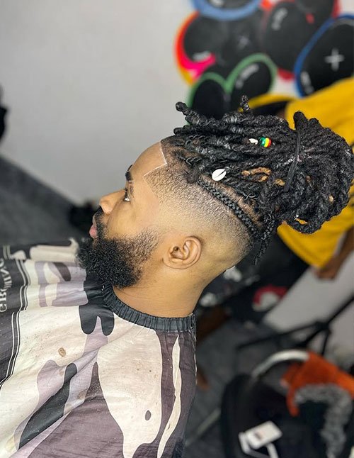 High Fade Beaded Dread Top Bun
