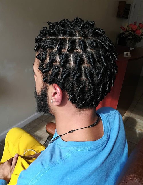 Short two-strand twists hairstyle for men with natural hair texture