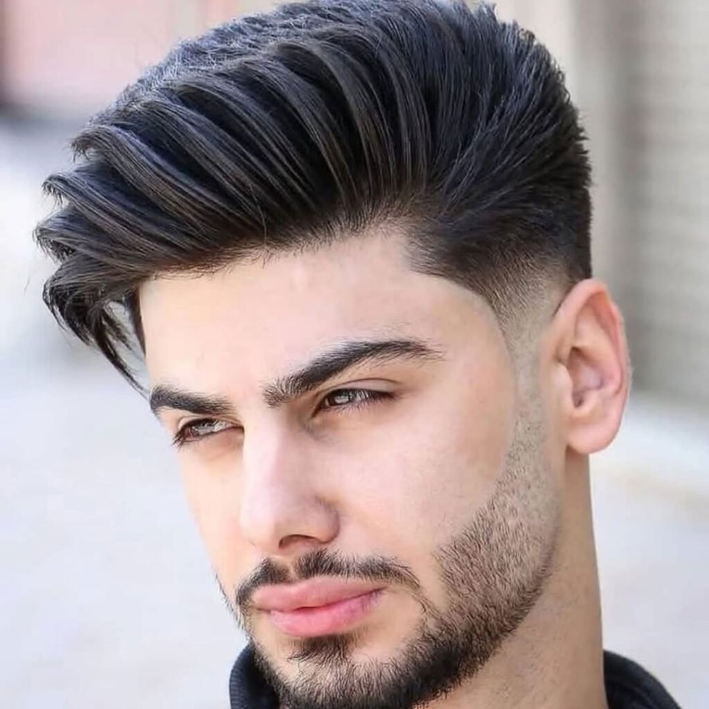 This style works well for straight to wavy hair, adding a classic yet dynamic look. It’s perfect for men wanting a statement hairstyle that exudes confidence and sophistication. Styling requires pomade or gel to maintain the height and sleekness throughout the day.
