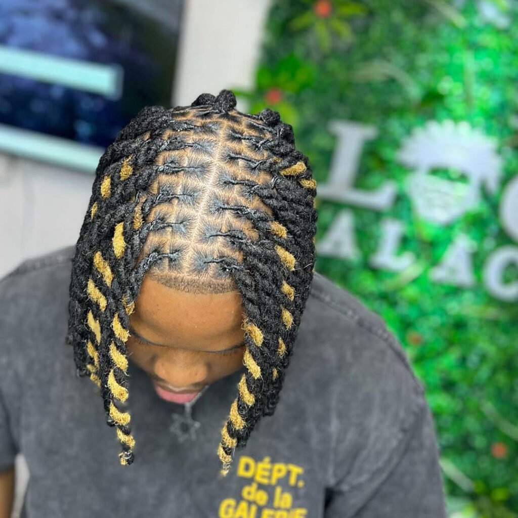 Two-strand twist braids with highlights provide a protective yet fashionable hairstyle. The twists are neat and defined, often incorporating vibrant or subtle highlights for added dimension.