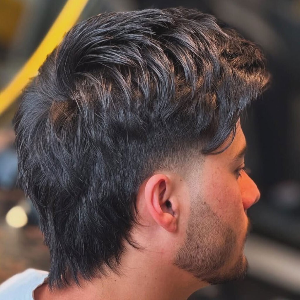 I once styled a client who was hesitant about trying a mullet but wanted something trendy and manageable. The textured mullet with low fade gave him just that—a bold silhouette softened by texture and a clean fade.