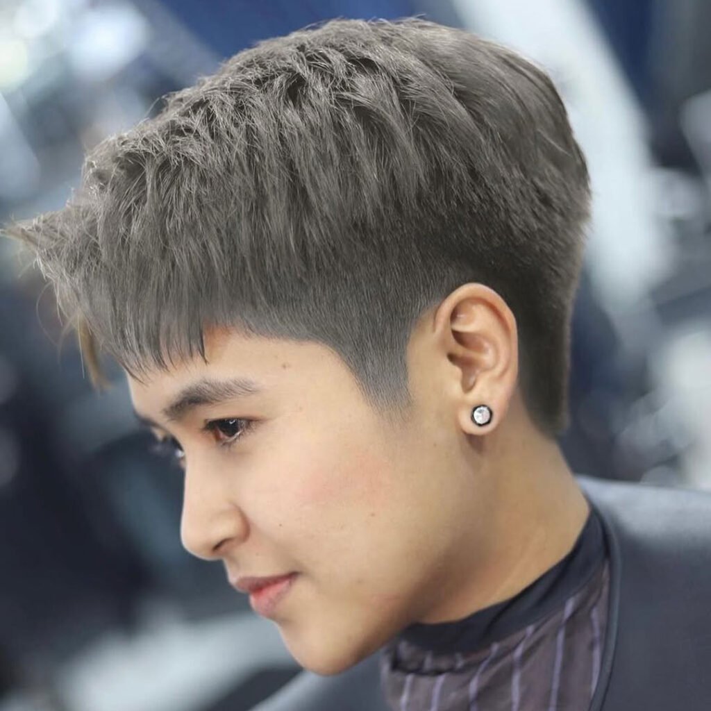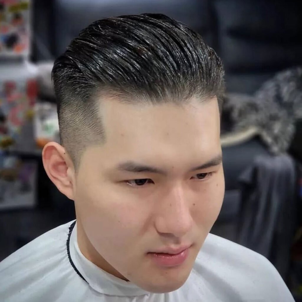 I’ve styled many clients from East Asian backgrounds requesting the two-block haircut with a side part, which has become immensely popular worldwide. This haircut features a clear separation between the longer top and shorter, faded sides, often paired with a natural or styled side part.