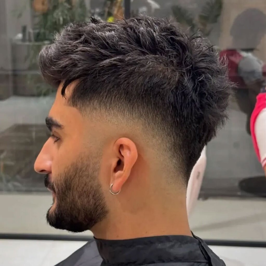 The textured crop with mid skin fade is a modern classic that blends sharpness with effortless style. The top features choppy, layered hair that adds natural volume and movement, perfect for men wanting a low-maintenance yet fashionable look.