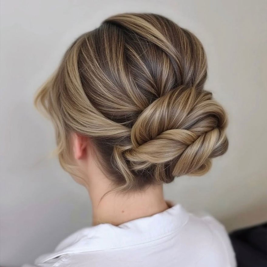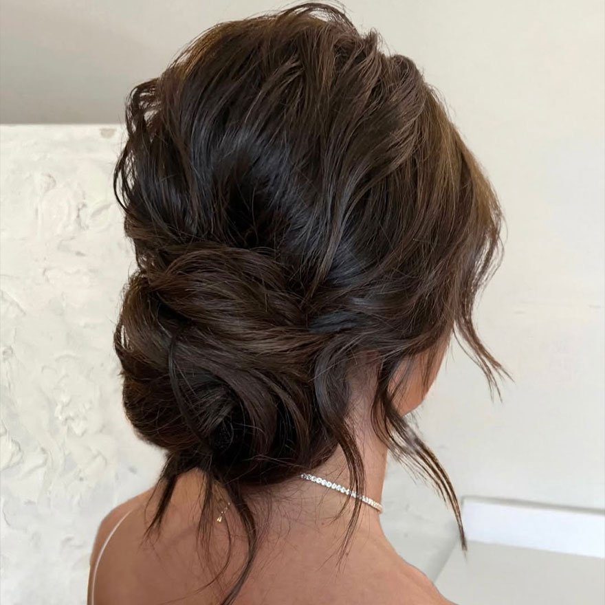The Textured Low Bun adds depth and dimension, especially to rich brunette shades. This style enhances natural volume and creates movement through subtle twists and waves. It’s ideal for anyone who loves modern, editorial-inspired updos that are still wearable for everyday occasions.