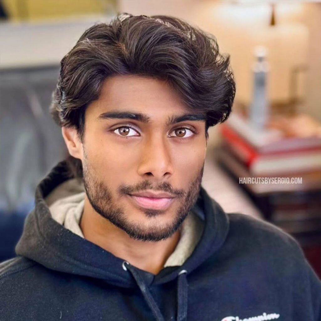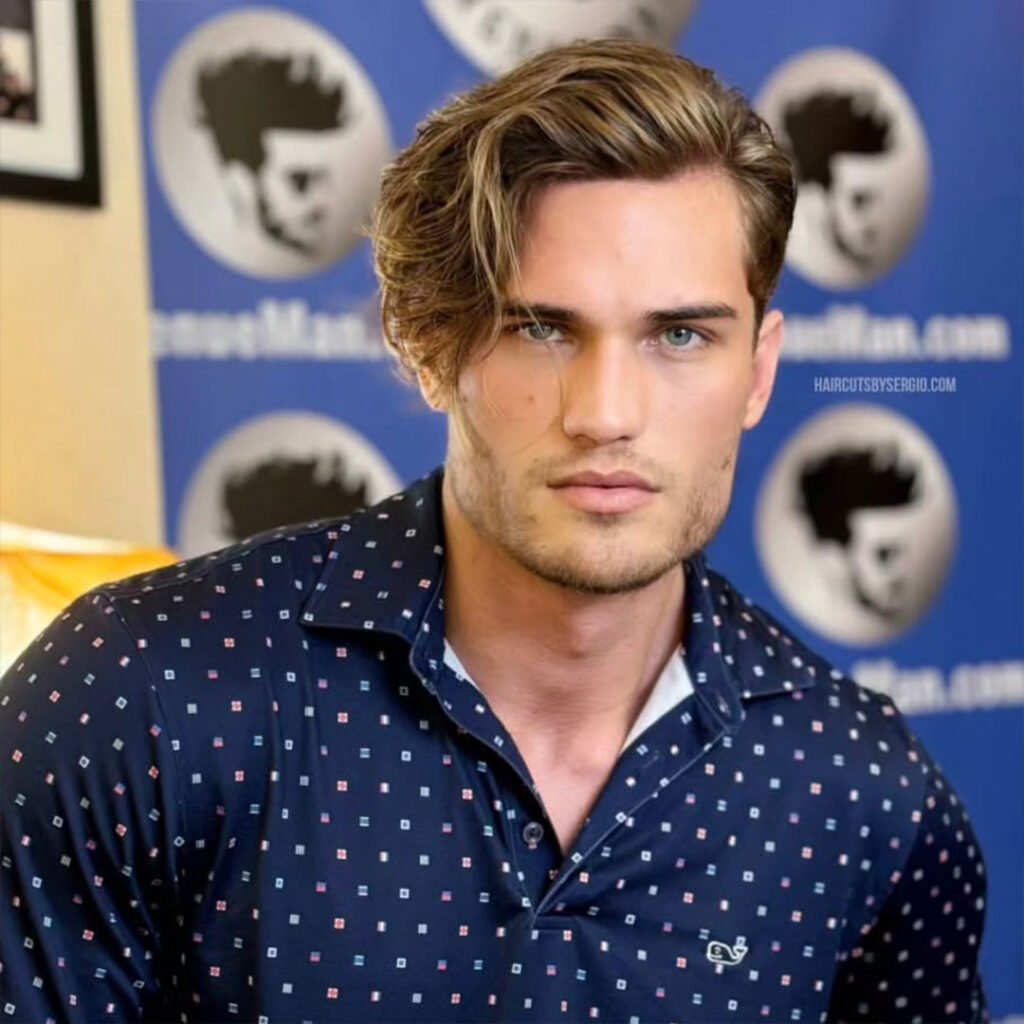The natural part allows your hair to fall gracefully on both sides, offering a symmetrical and flattering look for most face shapes. It’s ideal for those who prefer a subtle, low-maintenance hairstyle that’s easy to style. This cut works well for both straight and wavy hair, providing versatility and volume.