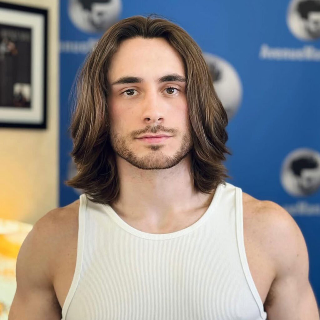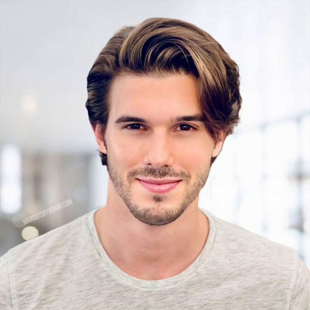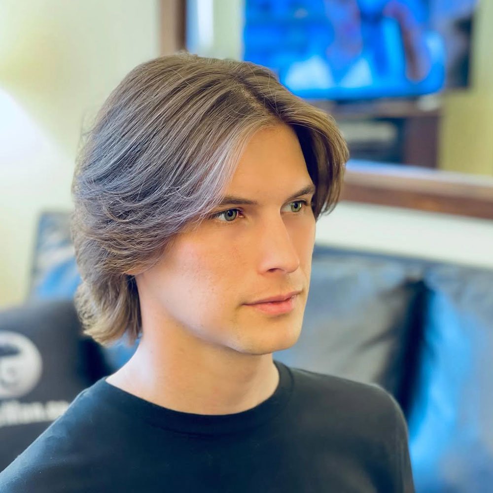 The medium-length middle part can be sleek or tousled, making it a versatile choice for any occasion. It’s perfect for men looking for a classic yet contemporary haircut that requires minimal maintenance effort.