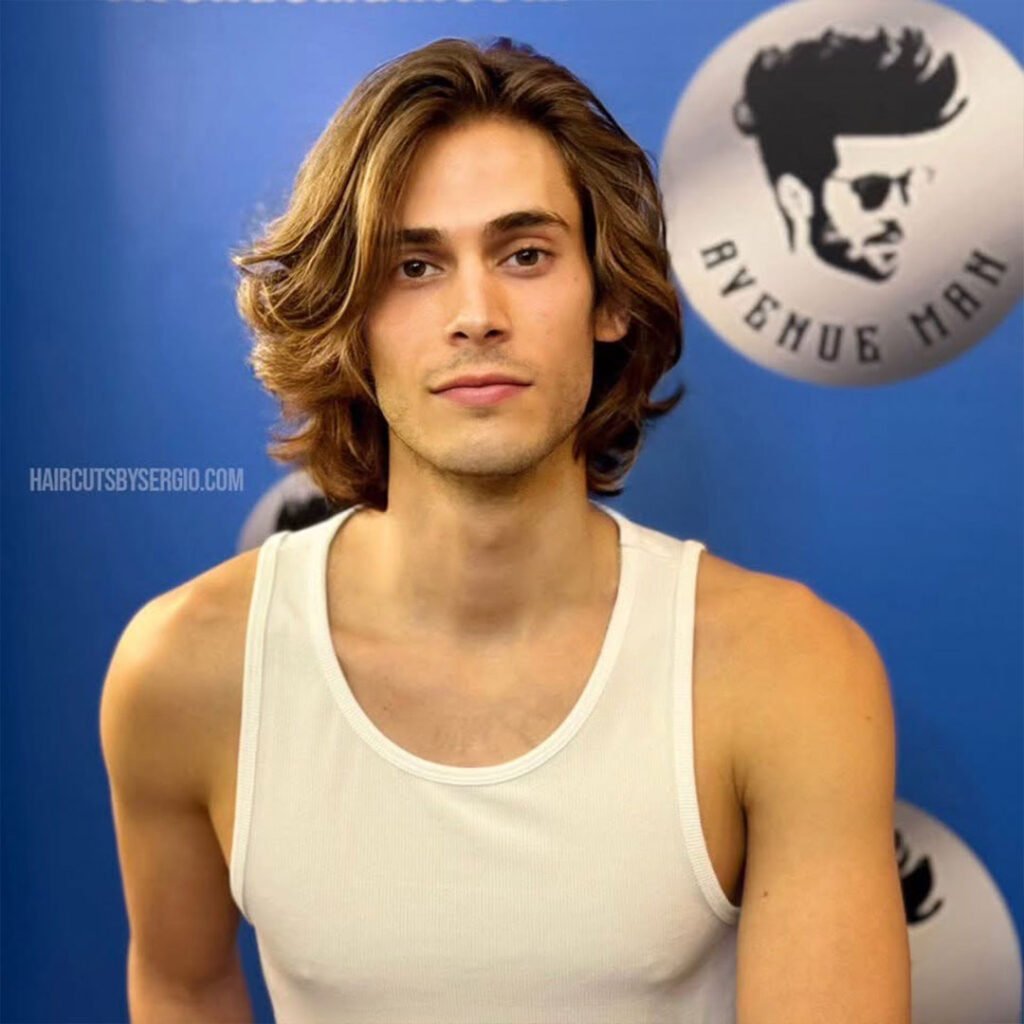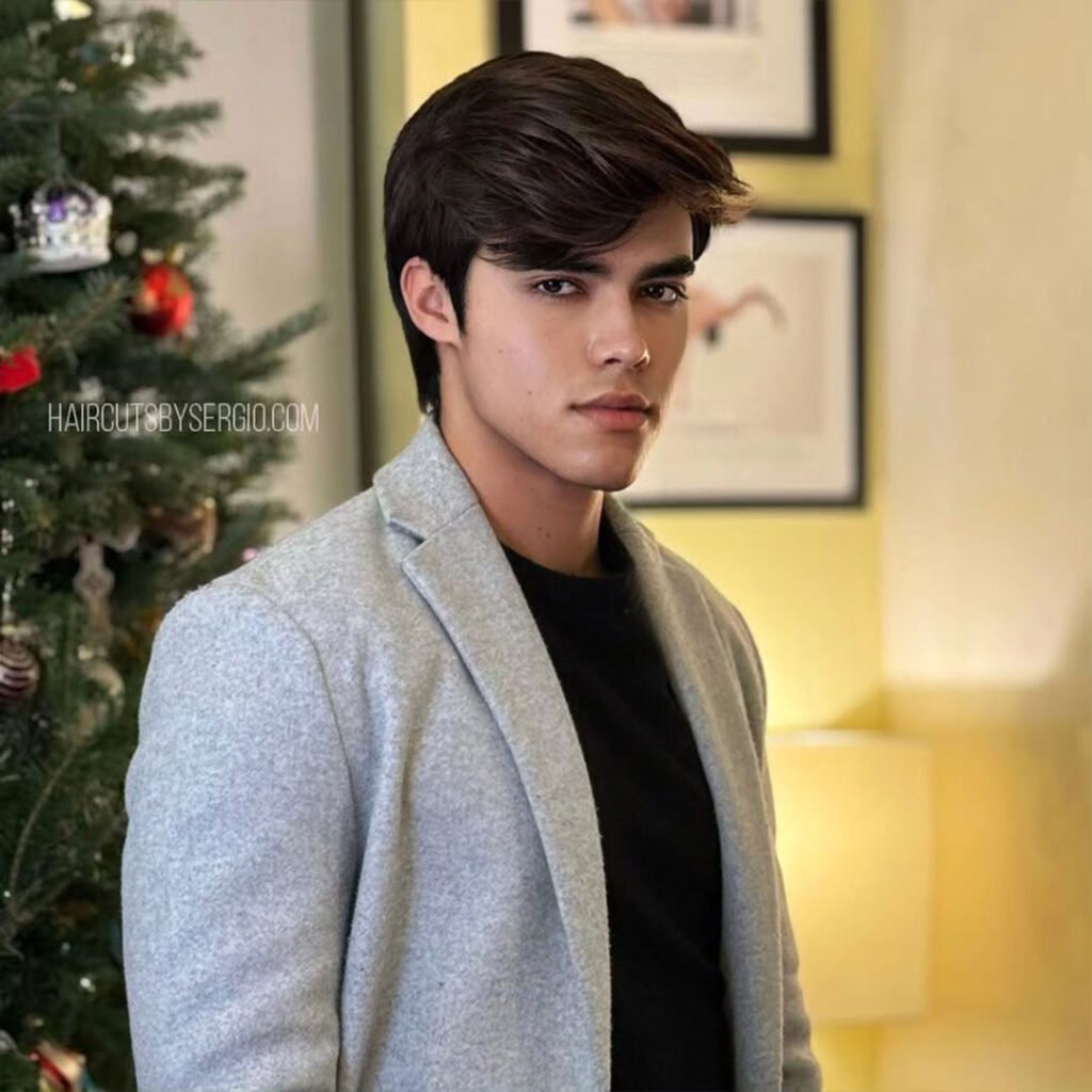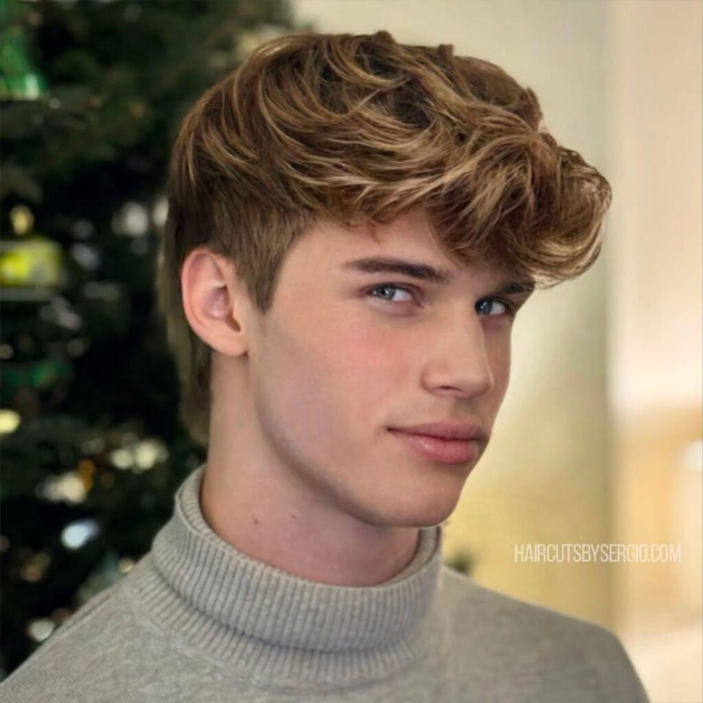 The curtains men’s haircut is a cool, laid-back style that has made a significant comeback. This cut features long, face-framing bangs that are parted in the middle, giving the hair a flowy, relaxed appearance.