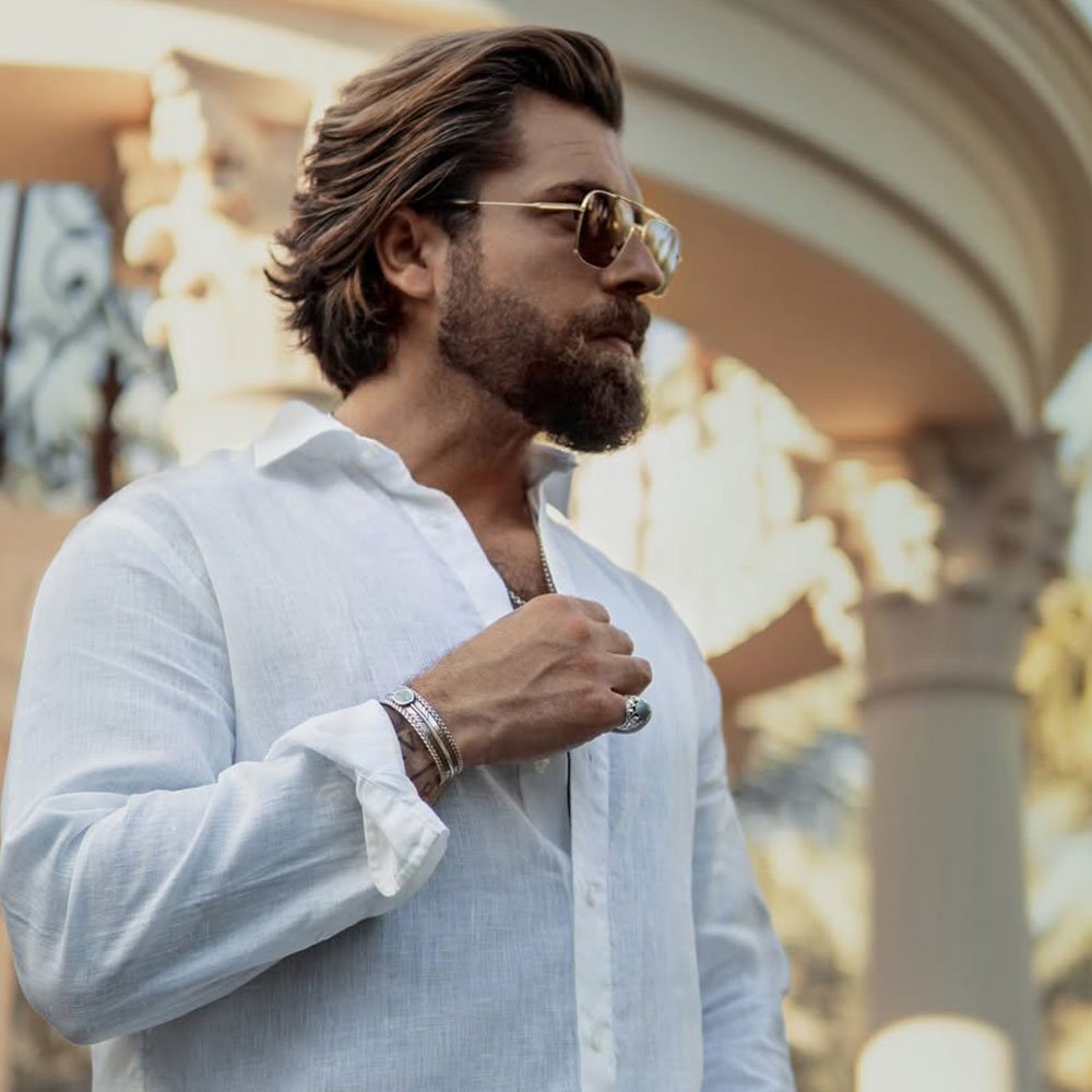 The medium-length middle-part men’s haircut offers a versatile and stylish look perfect for those who want to balance short and long hair. The middle part creates symmetry and adds a touch of modern sophistication, while the medium length ensures a manageable yet fashionable style.