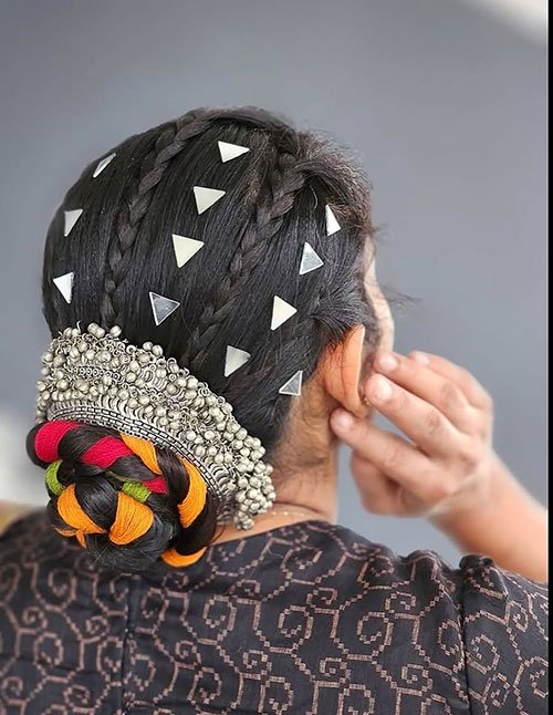 Imagine you’re getting ready for a dinner, a wedding, or even a “main character” moment. This style combines a braid detail with a low bun, so it feels elevated without being stiff or overly formal. The braid adds texture and shape, while the bun keeps everything secure and elegant at the nape.