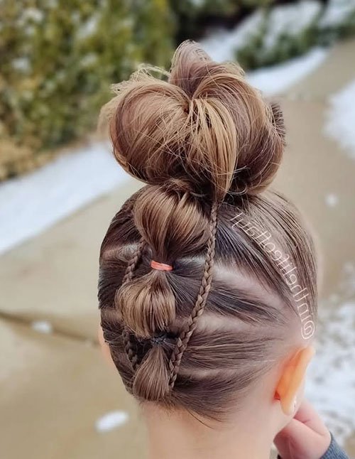 This style works great for long hair, dense hair, and anyone who wants a playful, textured finish that still holds up all day. Styling level is medium since you’ll need elastics and a few pins, but the steps are easy once you try it once. Tip: tug each bubble outward slightly, then wrap the end into a bun and pin it for that fluffy, trendy look.