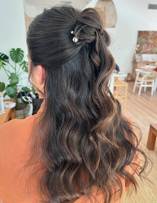 This look adds subtle elegance without feeling stiff and highlights the cheekbones perfectly. Slightly teasing the crown creates extra volume and adds a soft, stylish lift. It’s ideal for casual outings or semi-formal occasions.