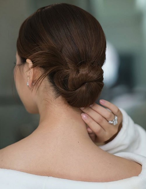 Maintenance is low to medium, with pins and light hairspray ensuring security. Leaving a few face-framing strands softens the look, while the vibe is clean, classy, and refined. Quick chignons work perfectly for office meetings, dinner dates, or casual elegance.