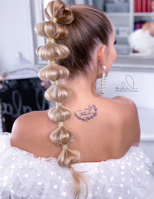 This youthful, fun look elevates ordinary ponytails into something trendy and eye-catching. Bubble ponytails are perfect for sporty-chic vibes, casual outings, or lively day events.