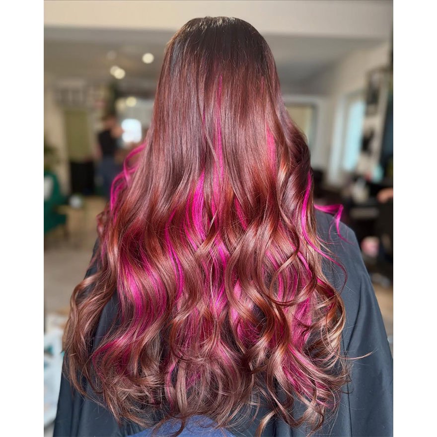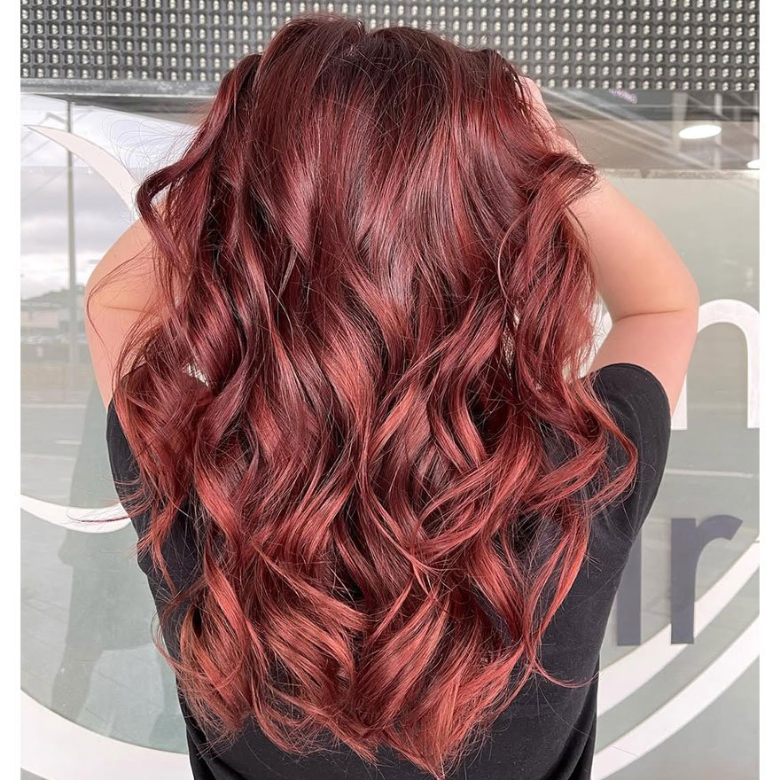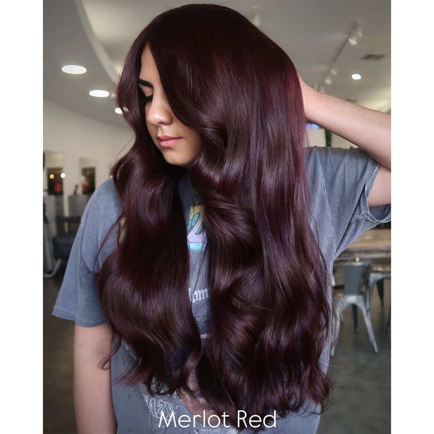 Merlot red brings rich wine tones that flow softly through the hair for an elegant finish. It’s a refined yet vibrant shade that instantly elevates your look.