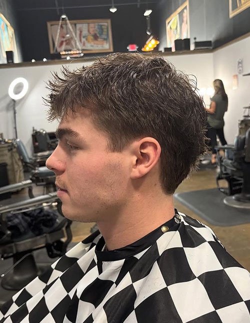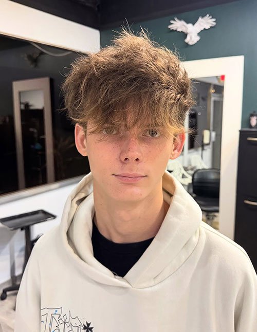 Styling requires medium effort, using a texturizing clay or paste to define separation. Regular trims maintain the shape and prevent overgrowth. This haircut strikes a perfect balance between casual playfulness and modern refinement, making it ideal for guys seeking effortless yet distinctive spring styling.