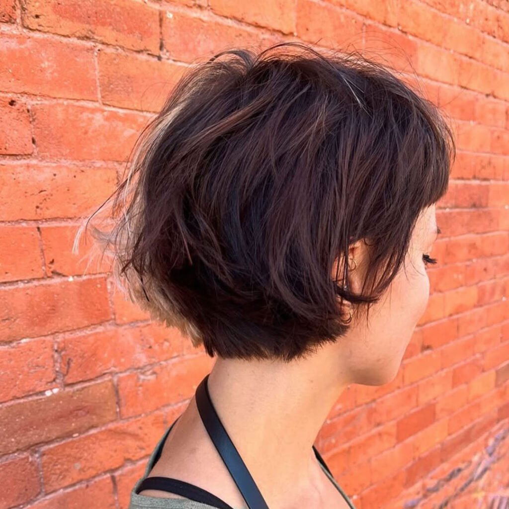 A messy short bob with choppy ends offers a playful and edgy vibe. The uneven, choppy ends give the hair texture and a lived-in feel that looks cool and effortless. This cut suits anyone wanting a modern, bold style.