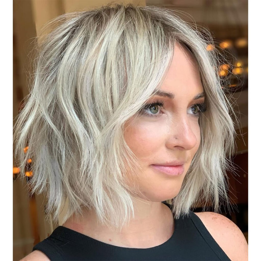 This style works best on straight or slightly wavy hair and adds volume by breaking up the heaviness of a traditional bob. The layers also make styling easier by giving the hair natural bounce.