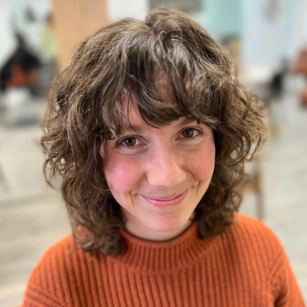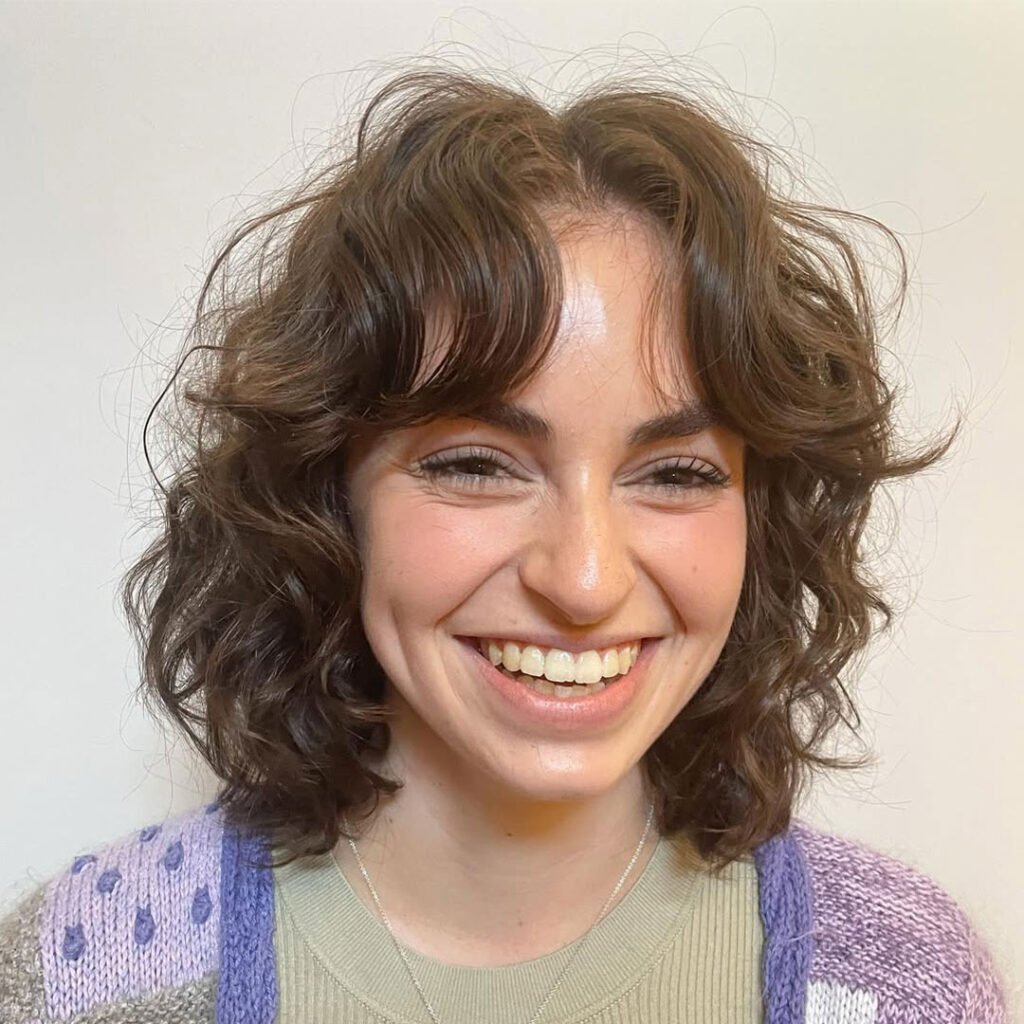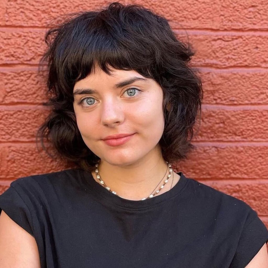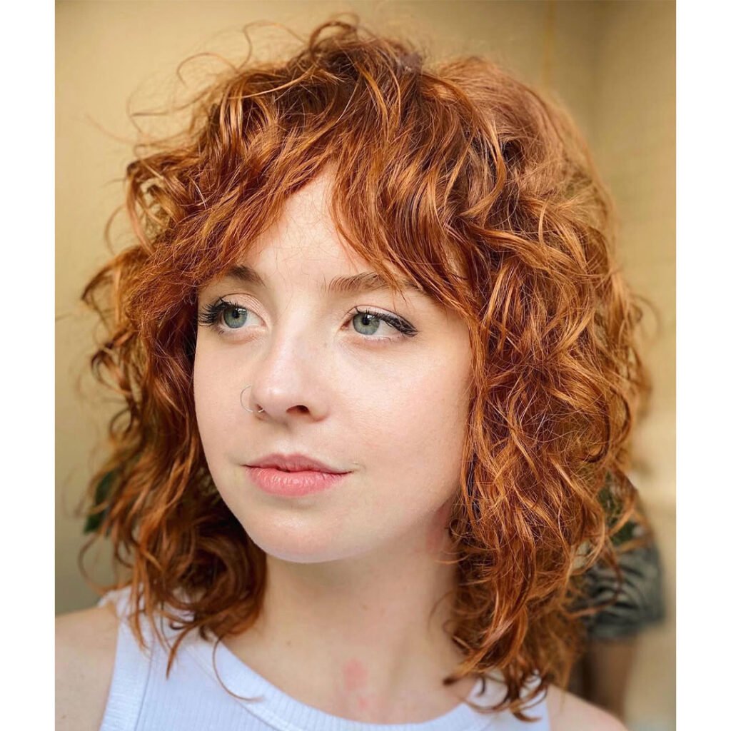 A curly shag with bangs is the perfect way to embrace natural curls while adding shape and texture. The shag layers reduce bulk, allowing curls to bounce freely and frame the face. The bangs add a playful element that blends well with the curly texture for a balanced look.