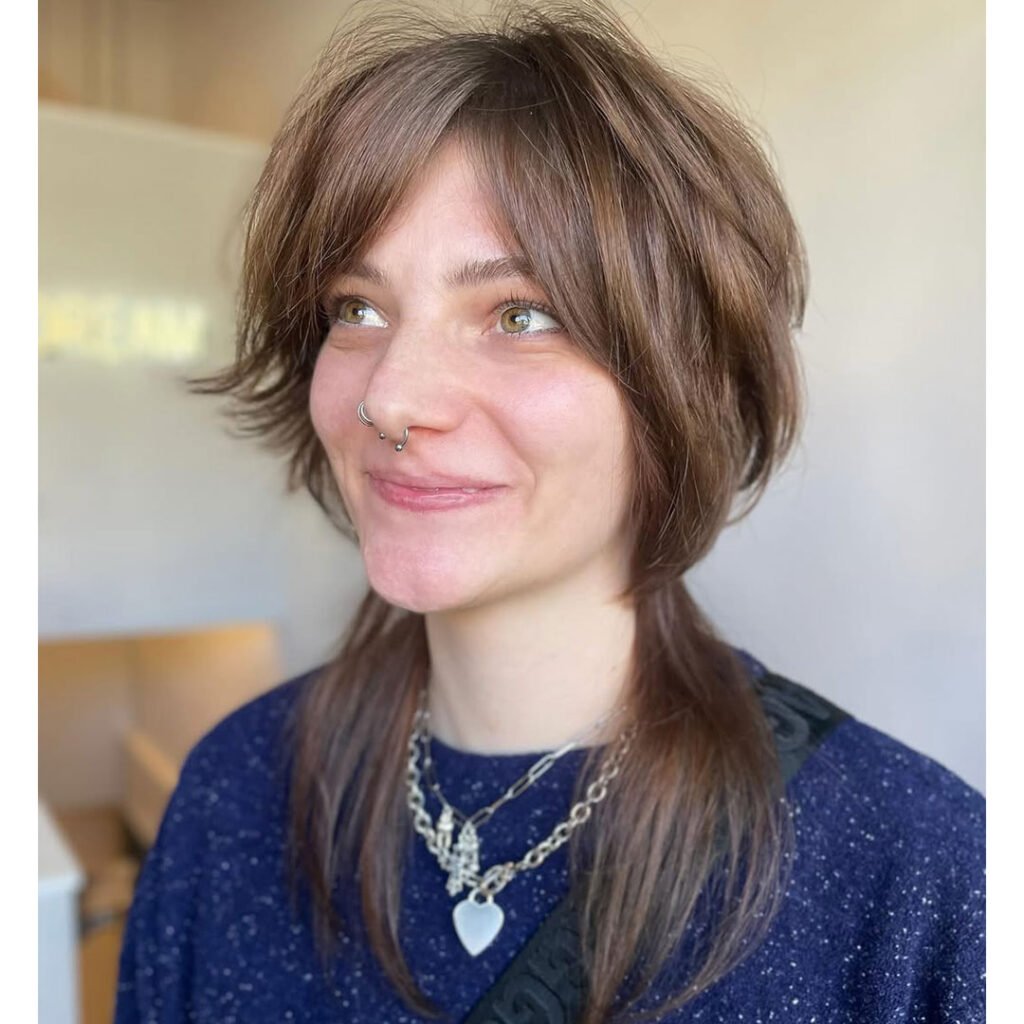 If you want a haircut that stands out and expresses your personality, the shag with a mullet vibe is a stylish and modern choice.