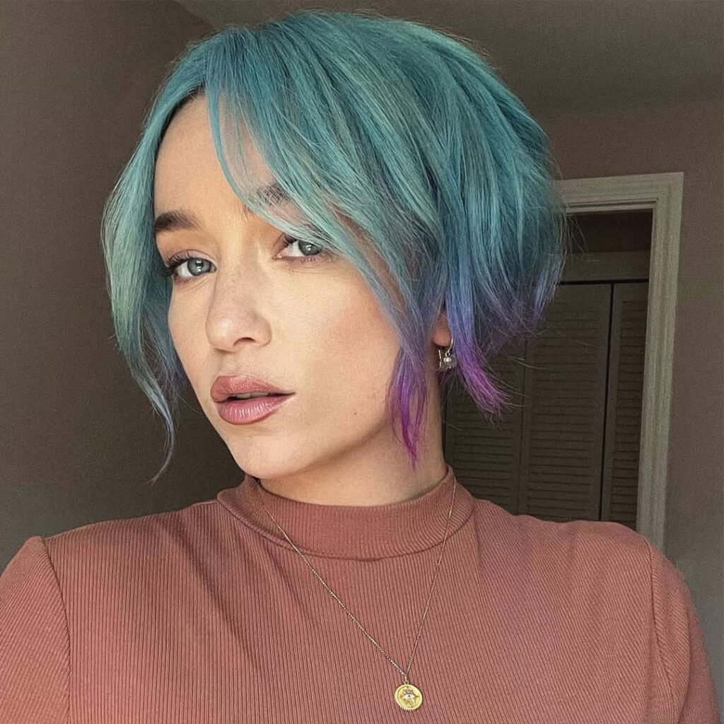If you want a fresh and creative hairstyle that stands out, this pastel bob with layers is a great option.