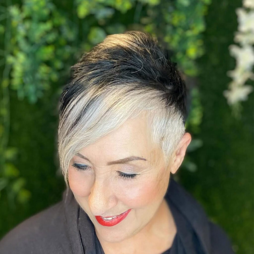 The two-tone feathered pixie is a standout haircut I’ve enjoyed creating for clients who want something bold and expressive. One client wanted a shortcut with lots of texture and personality, and the two-tone color gave her the perfect pop.