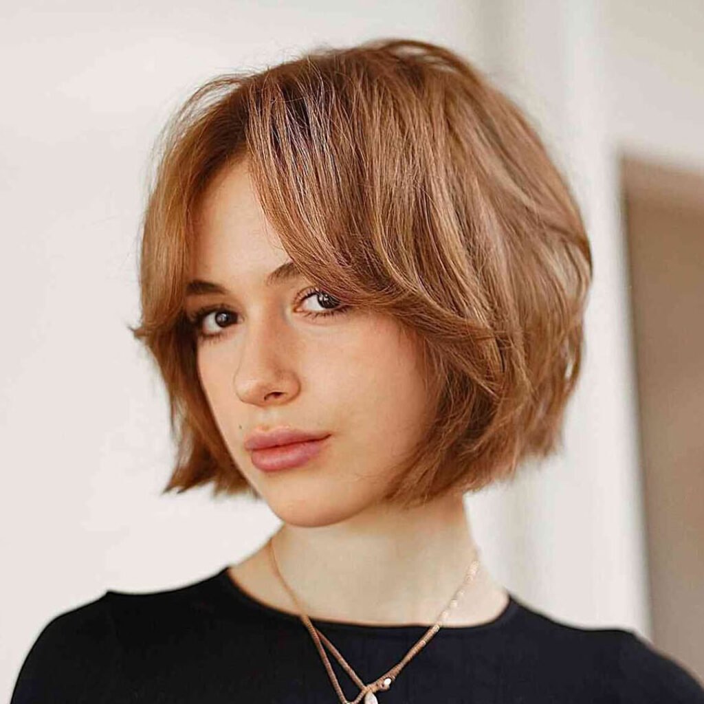 The short layered bob with side sweep combines soft layers with a flattering side part that frames the face beautifully. The layers add texture and movement, while the side sweep brings a feminine touch.