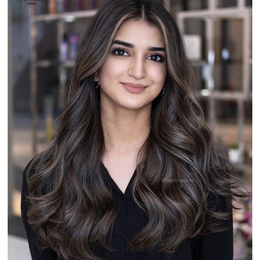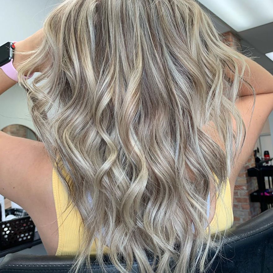 This classic cool-toned blonde uses a mix of pale ash ribbons to neutralize brassiness and deliver a silky, refined finish. The highlights flow effortlessly through the hair, adding brightness without harsh contrast. It’s a modern, soft-light technique that enhances smooth texture and adds clarity to layered cuts and long waves alike.