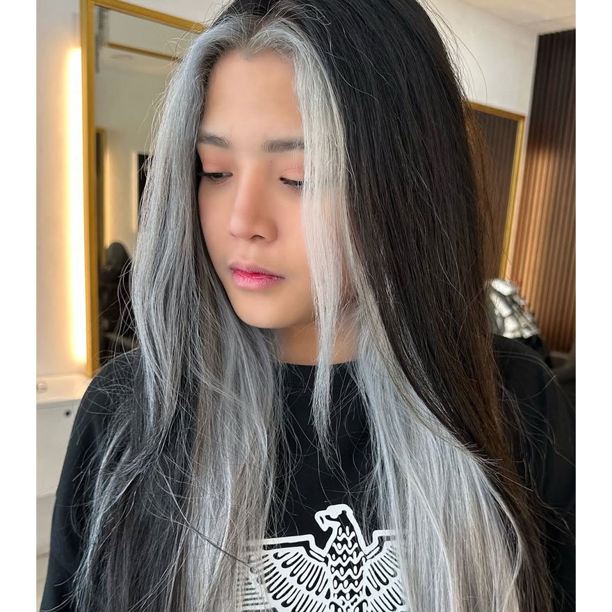 A daring and high-contrast look, this split dye pairs jet-black richness with metallic silver precision. The color division creates a visually striking symmetry, offering an avant-garde yet wearable expression of individuality. Maintaining vibrancy requires consistent toning on the silver side, but the dual effect is both modern and commanding.