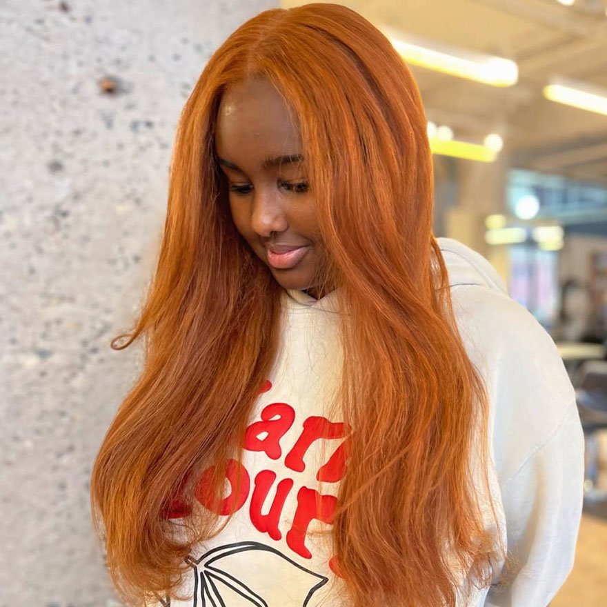 This bold, high-impact tone celebrates pure copper infused with vibrant orange warmth for an unmistakably luminous finish. It’s perfect for those who love creative expression and energy in their style. The richness of its undertones makes it adaptable to various skin tones, while its glow catches light beautifully in both straight and wavy textures.