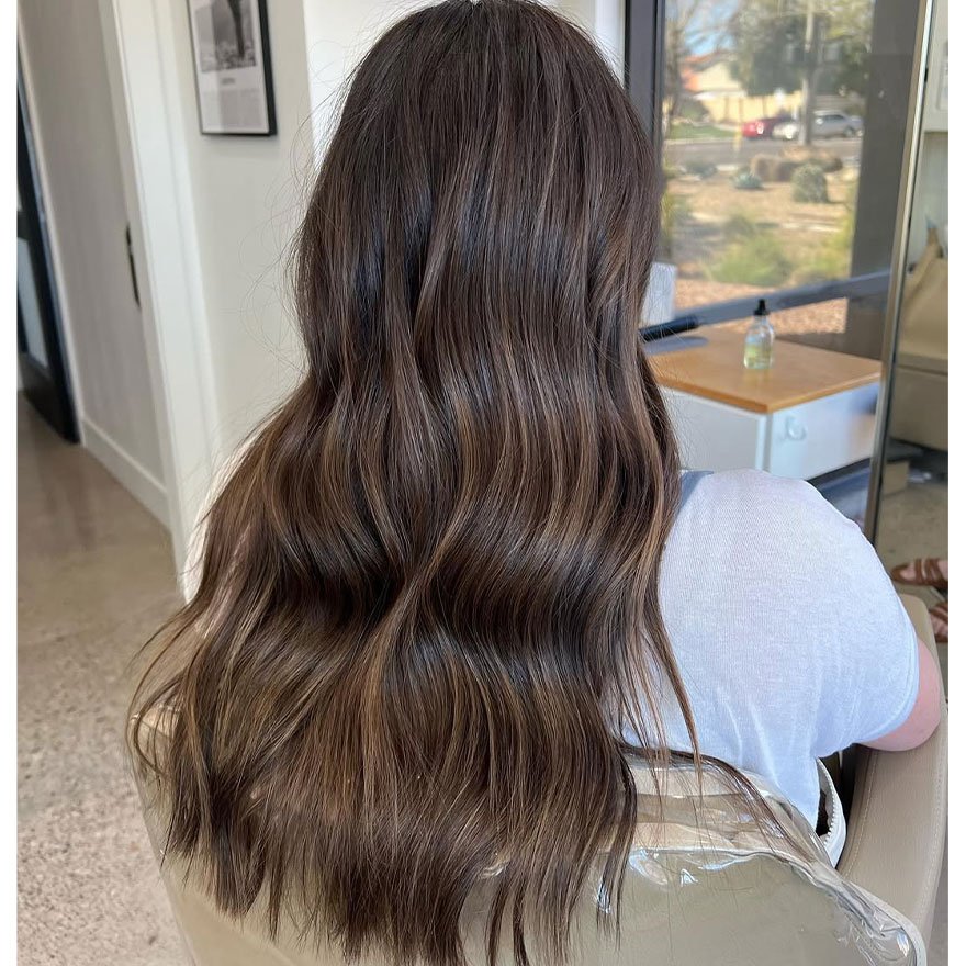 Smoky Ash Brunette combines neutral brown tones with fine ashy overlays, giving hair a muted, refined sophistication. This tone works beautifully for clients who prefer understated elegance and depth without strong warmth. It’s the perfect transitional shade for anyone seeking a professional yet trend-aware look that requires minimal upkeep.
