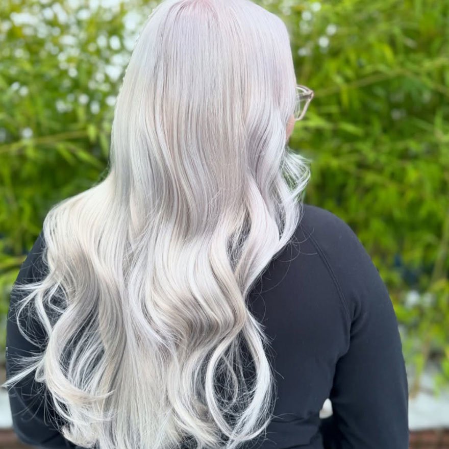 I performed this transformation for my client, who was attending a photo shoot. The silver shimmer added an ethereal brightness under studio lights, and she messaged me afterward saying she’d never received that many compliments on her hair before.