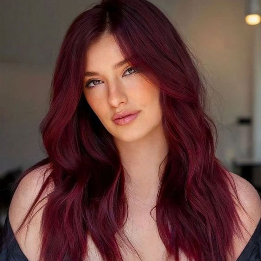 This luxurious shade intertwines deep violet undertones with burgundy warmth, producing a color that’s both mysterious and sophisticated. Its multidimensional depth catches subtle hints of red and purple under light, creating an almost velvety richness. Ideal for those seeking intensity with refinement, it remains one of the most captivating evening hues of the year.
